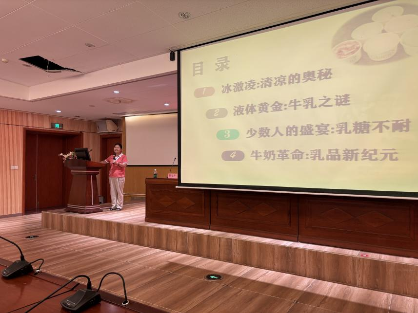 胡院长的讲座内容丰富多样,她首先从雪糕的分类入手,结合食品专业的特点,深入讲解了乳原料的特性。此外,胡院长还科普了乳糖不耐症的病理和预防措施,使同学们对乳制品有了更加深入的理解。
