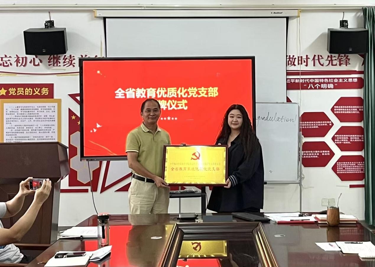 在优质化党支部挂牌仪式环节,学院党委书记王开强为获奖支部颁发牌匾,并指出“优质化党支部并不是终点,而是推动党支部标准化、规范化建设新起点。各支部要以评促建,在服务国家战略、推动学科创新中发挥战斗堡垒作用。”