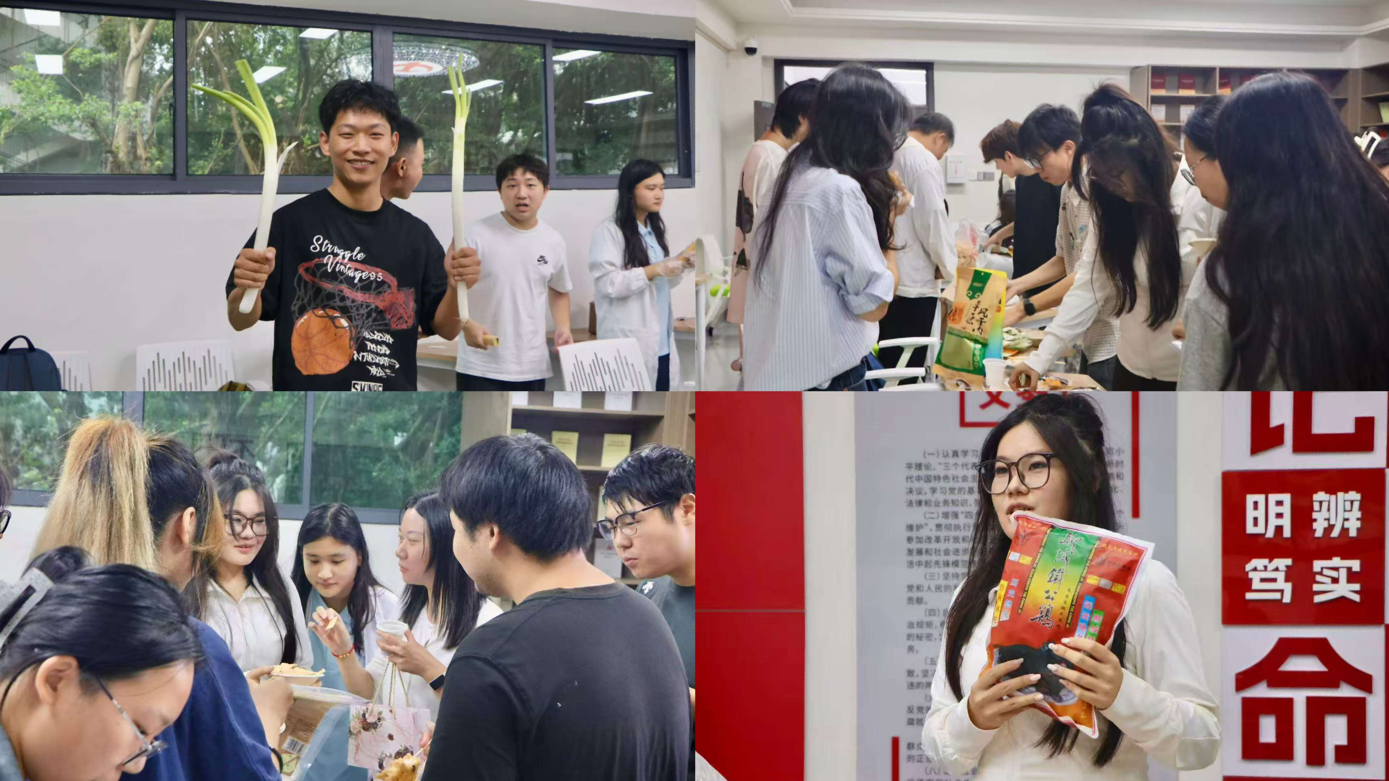美食分享环节亮点纷呈,同学们依次登台,在三分钟内生动介绍家乡美食的产地、工艺及背后的文化故事与成长记忆。分享结束后,所有参与活动人员共同前往美食展示区,各类美食琳琅满目,大家共同驻足品尝、亲切交流,在舌尖滋味与欢声笑语中拉近彼此距离,为异乡求学时光增添了温暖的烟火气。